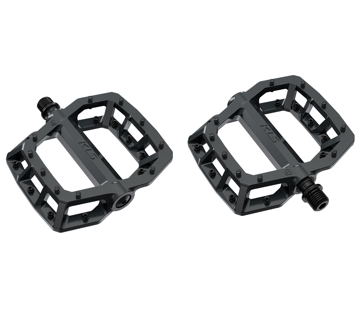 Platformové pedále KLS FLAT 50 023 majú ergonomický tvar, ktorý poskytuje dobrú priľnavosť a zároveň minimalizuje hmotnosť tela pedálu. Telo pedálu je odliate z hliníkovej zliatiny, vďaka čomu je robustné a relatívne ľahké. CNC opracovaná Cr-Mo oska v kombinácii s 2DU klznými ložiskami zaisťuje plynulé šliapanie aj v tých najdrsnejších podmienkach a dlhú životnosť. Konkávne tvarované telo pedálu s 10 pinmy umiestnenými na každej strane pedálu poskytuje grip aj v najostrejších zákrutách pri jazde v bikeparkoch a na najťažších trailoch.